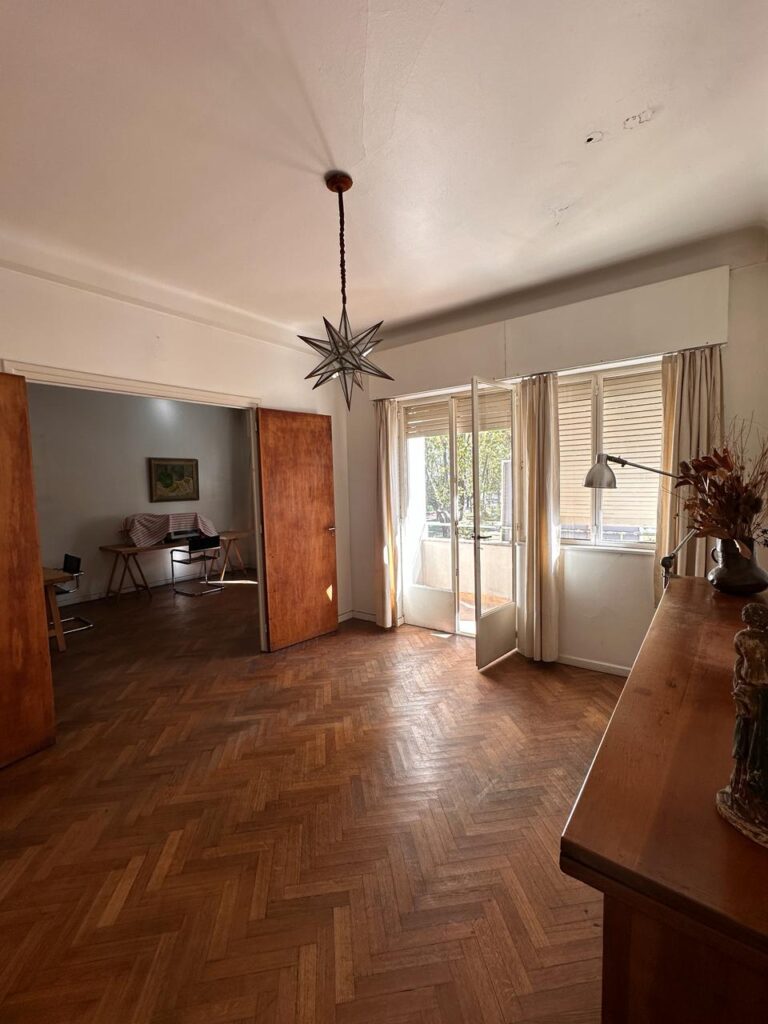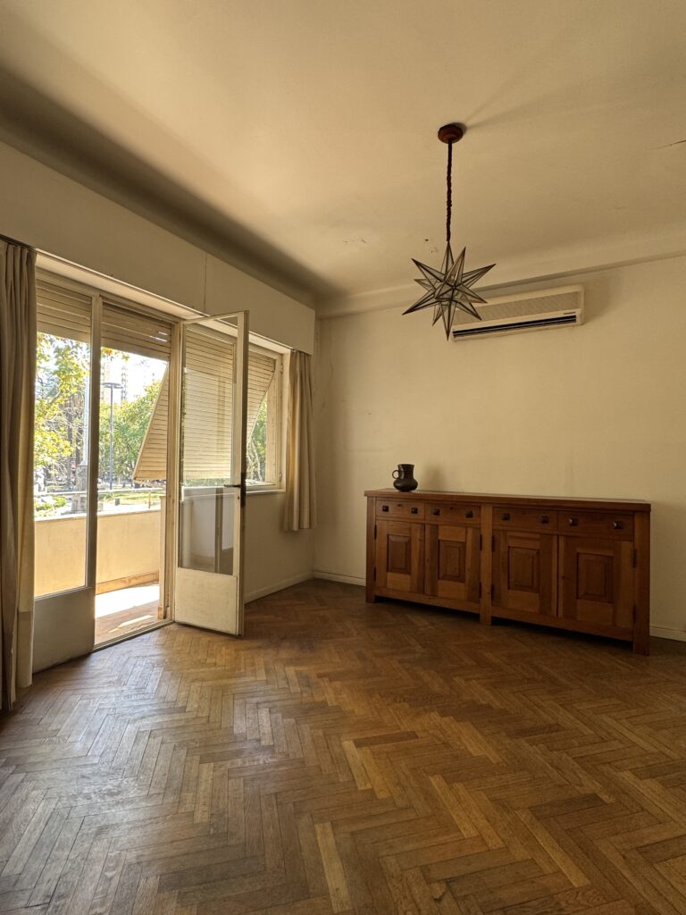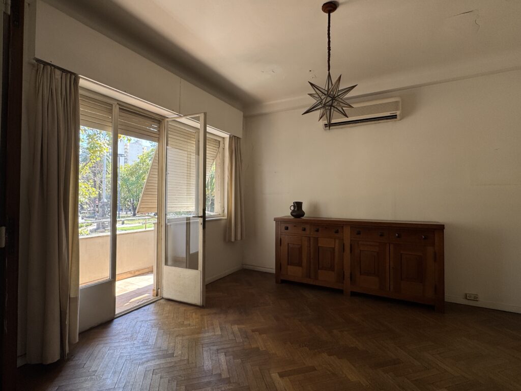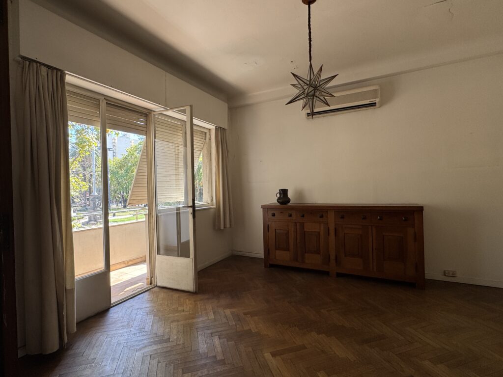 – Living comedor al frente y balcón con vista a la Plaza San Martín.